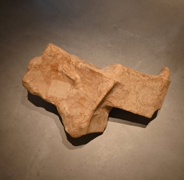 Also, there are two sculptures. The firs one was created from the mold of the suitcase I used when I migrated from Chile. It is presented as a rock, symbolizing the weight of the things we carry when we move from one place to another. At the same time, the top part alludes to the Andes Mountains, with a view similar to the one I had near the place where I lived in Santiago.